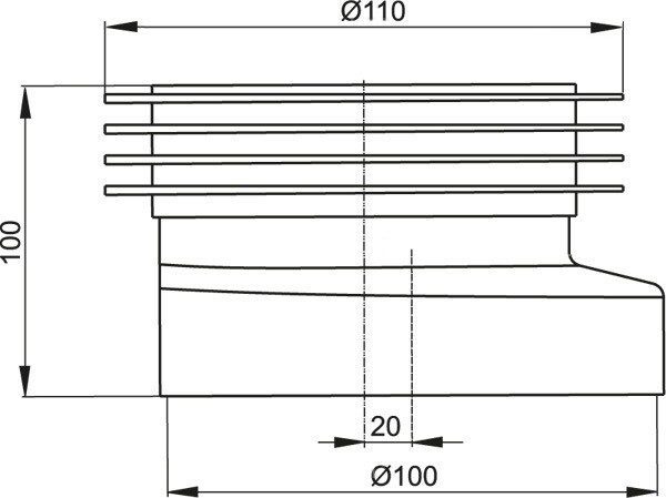 Манжета для унитаза эксцентрическая Alcaplast 100 мм (A990) предназначена для вертикального подключения унитаза к стокам диаметром 110 мм. Ось данной манжеты смещена на 20 мм. Размеры составляют 110х100х110 мм.