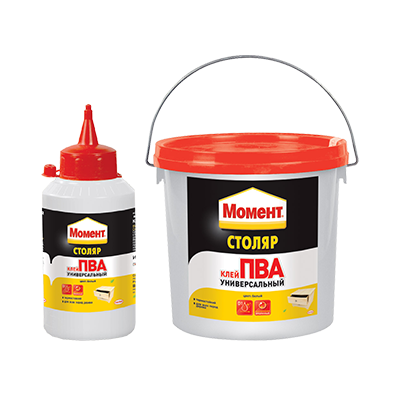 Клей ПВА столярный МОМЕНТ Столяр Универсальный D1 750 г (1960504) на основе водной дисперсии ПВА. Предназначен для склеивания всех пород дерева, ДСП, фанеры, шпона, облицовочных материалов, картона, фурнитуры, где не требуется влагостойкость.