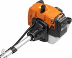 Жесткий приводной вал дает возможность использовать в работе нож или диск. Конический редуктор имеет избыточный запас прочности и способен выдерживать большие нагрузки. При этом редуктор легко отсоединяется, что позволяет использовать двигатель мотокосы в качестве силового агрегата.
