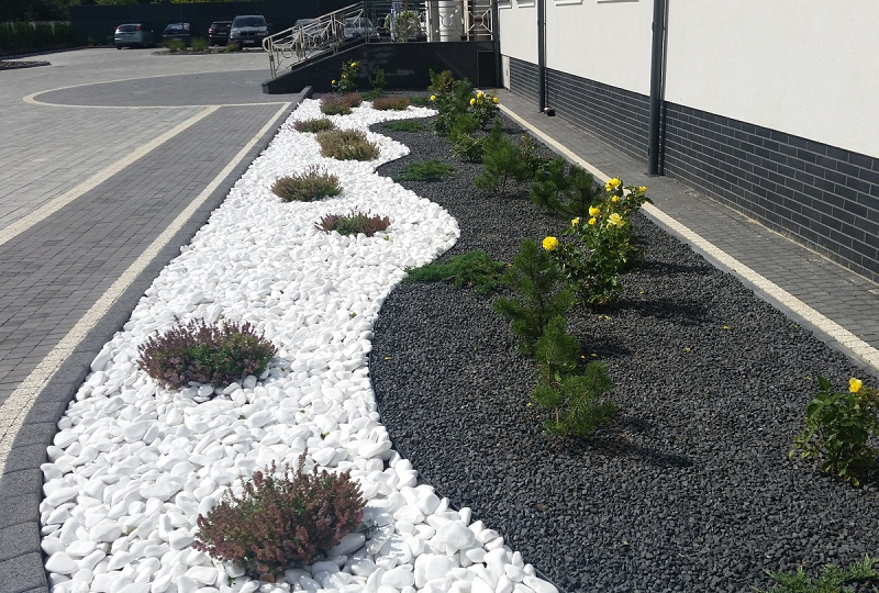 Щебень декоративный широко используется от оформления цветочных клумб и создания панно в ландшафтном дизайне до благоустройства мест захоронения.