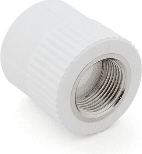 Муфта полипропилен 25х1/2″ комбинированная внутренняя резьба белый РосТурПласт (10654) применяется в системах водоснабжения и отопления. Предназначена для соединения полипропиленовой трубы диаметром 25 мм и компонента системы с наружной резьбой 1/2″, выдерживает давление до 25 бар. Закладные детали выполнены из высококачественной латуни типа ЛС-59-2 с пониженным содержанием свинца.