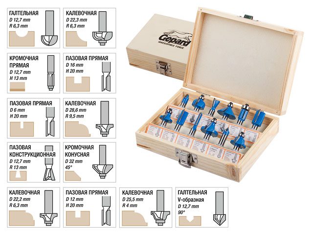 Набор фрез по дереву 12 предметов GEPARD (GP2300-08) предназначен для декоративной обработки фрезерованием деревянных заготовок мягких и твердых пород. С помощью фрез достигается качественная и эффективная обработка поверхностей.