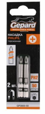 Бита для шуруповерта магнитная PH2 50 мм 2 штуки GEPARD (GP3900-50) применяется в качестве сменной насадки для работы с крепежом с крестовым шлицем стандарта Philips. Торсион позволяет корректировать усилие момента заворачивания крепежа, что способствует более долгому сроку службы.
