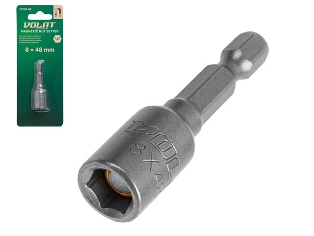 Бита для шуруповерта торцевая магнитная 8х48 мм ВОЛАТ (17520-08) предназначена для удобного монтажа и демонтажа болтов, кровельных саморезов и шурупов с шестигранной головкой. Изготовлена из прочной углеродистой стали, что обеспечивает надежность и долговечность инструмента. Бита имеет внутренний шестигранник, который обеспечивает хорошую передачу крутящего момента. Величина посадки равна 1/4″, что позволяет использовать биту с различными моделями шуруповертов. Благодаря магнитному наконечнику, бита легко удерживает крепежные элементы, что облегчает работу и предотвращает их случайное падение.