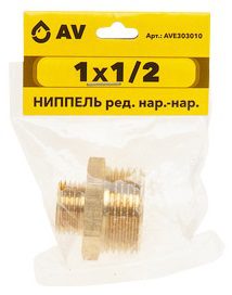 Ниппель латунный редукционный наружная-наружная 1″X1/2″ AV ENGINEERING (AVE303010) применяется для бессварочного соединения труб в быту и присоединения дополнительных приборов, бытовой техники и др. к существующей трубопроводной системе, работающей в условиях неагрессивных сред.