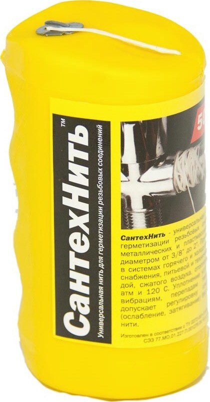 Нить сантехническая СИМТЕК СантехНить 50 м (5-0035) является наиболее простым и надежным средством для монтажа металлических и пластиковых фитингов. Представляет собой нетоксичный материал, для работы с которым не требуется краска, растворитель или пропитка. Она не впитывает влагу и не разбухает, как синтетический материал не подвержена разложению. Неприхотлива в подготовке к работе.