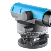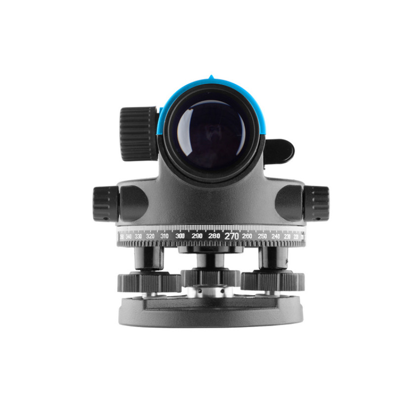 Нивелир имеет горизонтальный лимб в 360° для угловых измерений, а дальномерные нити сетки нитей могут быть использованы для измерения расстояний. Зеркальце позволяет настроить нужный угол для контроля пузырькового уровня, а регулировка диоптрий — настроить резкость изображения сетки нитей.