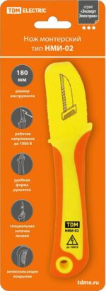 Нож электрика TDM НМИ-02 (SQ1003-0107) предназначен для снятия изоляции с проводников, разделки провода, снятия оболочки кабеля без повреждения остальных элементов конструкции кабеля.
