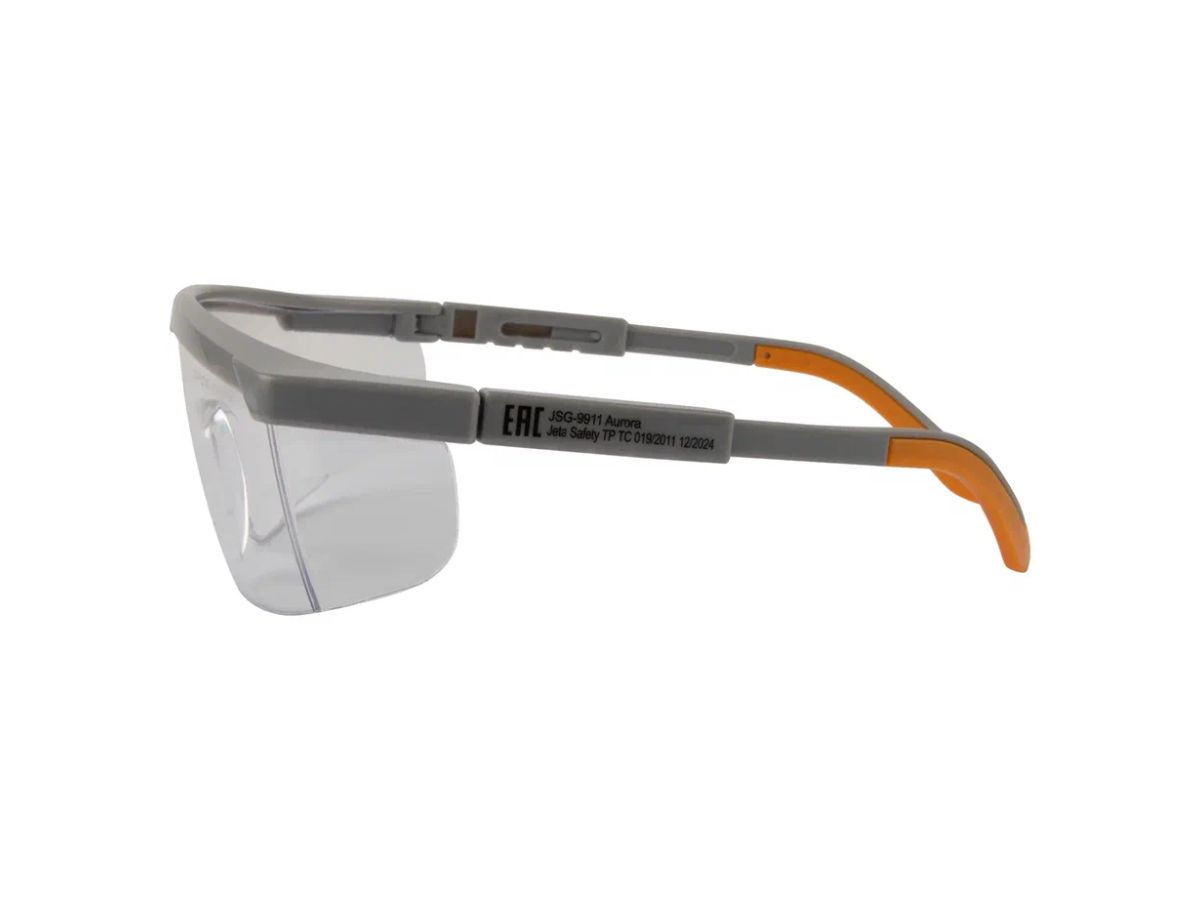 Очки защитные открытые JETA SAFETY Aurora прозрачная линза (JSG-9911) с боковой защитой и регулировкой. Современные, легкие, универсальные очки из поликарбоната с панорамным защитным стеклом и покрытием против царапин и запотевания с регулировкой дужек.