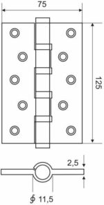 Петля дверная врезная 125х75 мм ARNI CP 2 штуки хром выполнена из стали с гальваническим покрытием, защищающим от коррозии. Максимальная нагрузка на 2 петли до 60 кг.