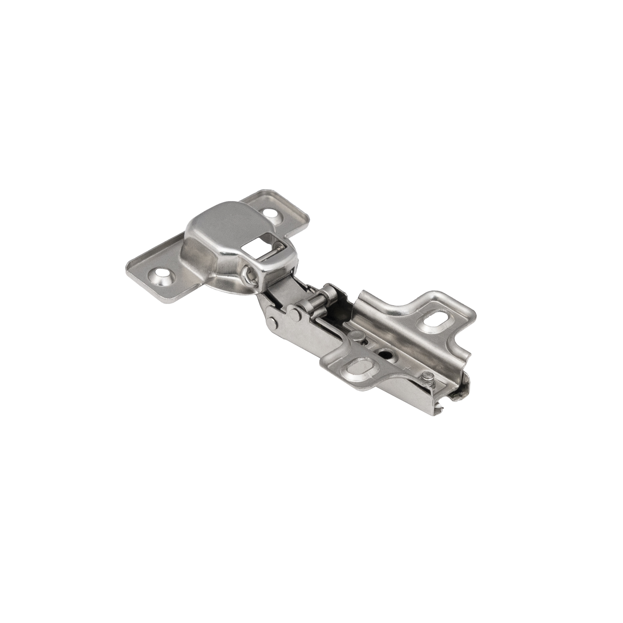 Петля накладная выполнена из холоднокатаной стали, с чашкой 35 мм, имеет механизм надвижного монтажа slide on и регулировочный винт с размером по резьбе в 10 мм. Петля предназначена для установки на фасад с перекрытием всех стенок корпуса примыкания к фасаду. В зависимости от категории AKS Light, AKS, AKS Plus — запас прочности от 50 000 до 80 000 циклов на фасаде 1000×600 или 6,4 кг на пару петель. Вес петель от 52 до 60 гр.