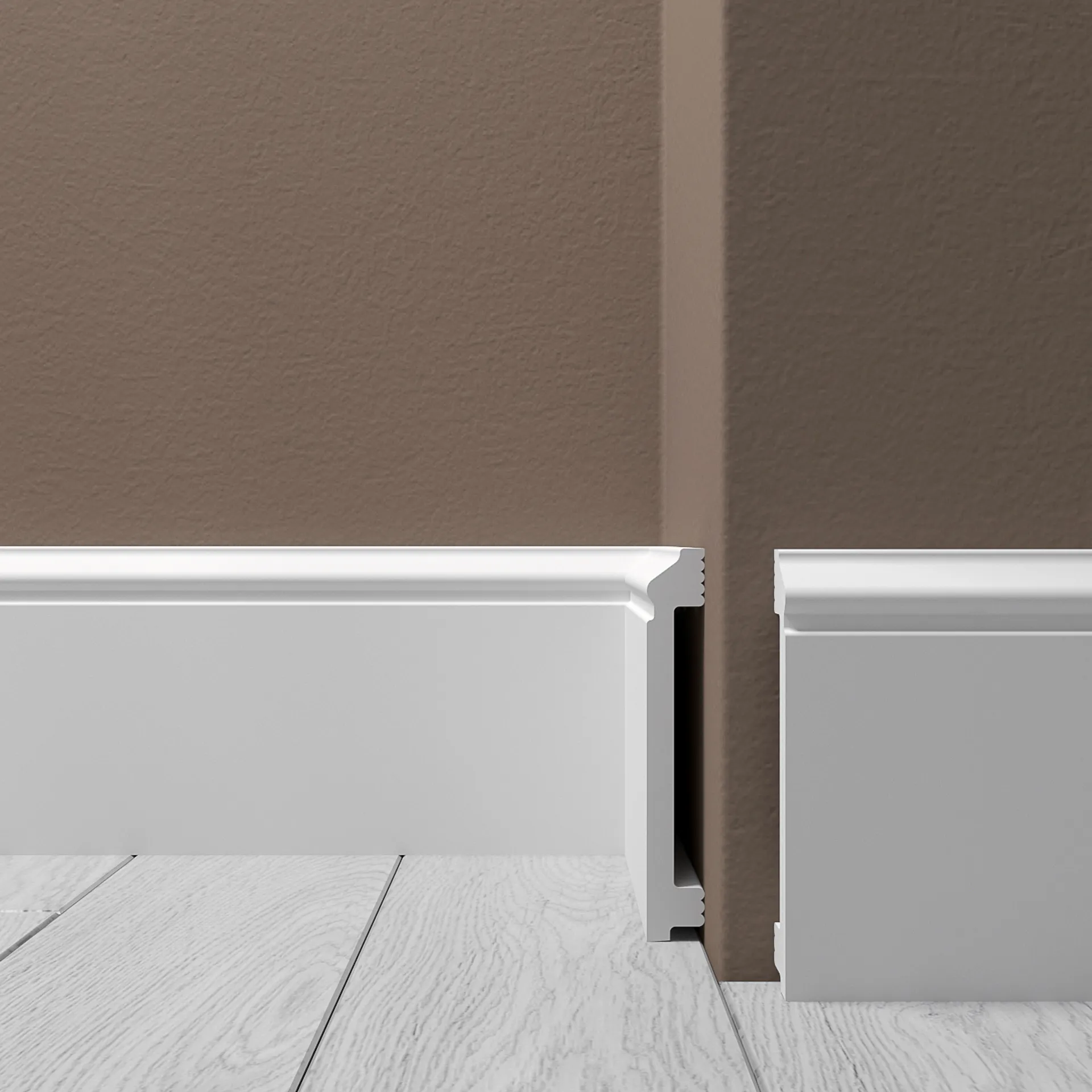 Плинтус напольный ДЕ-БАГЕТ Xps Polymer Н 4 2 м — плинтус напольный ударопрочный, влагостойкий, имеет хорошую гибкость, отлично подходит для неровных стен, простой монтаж на клей.