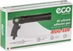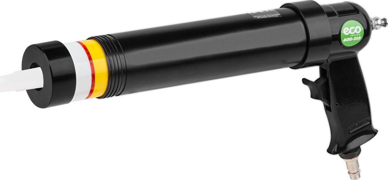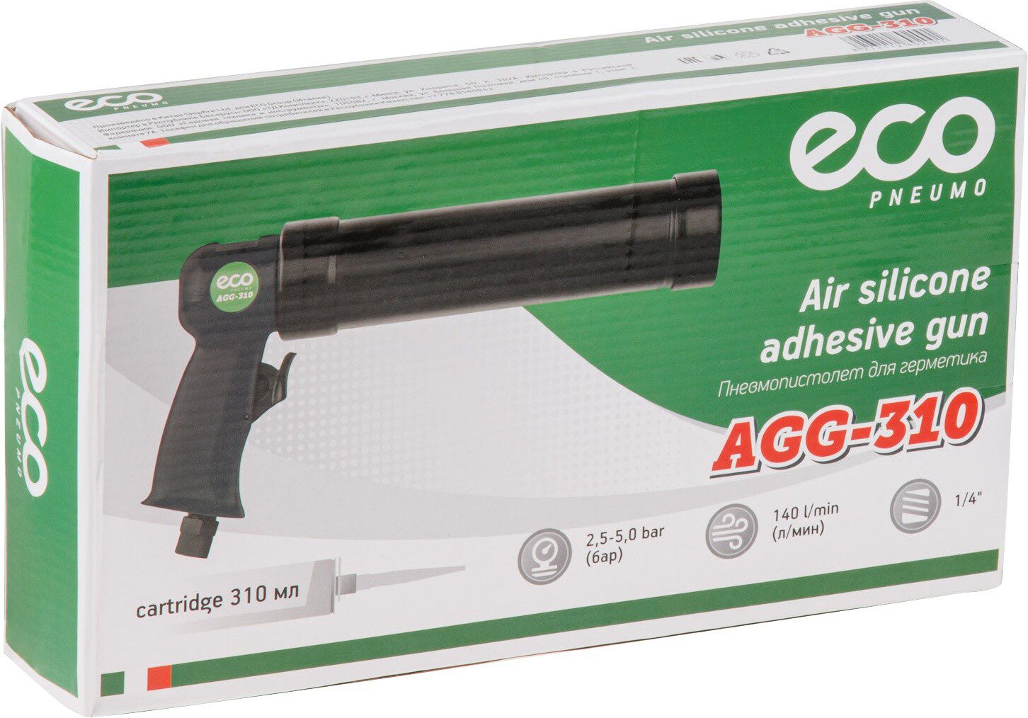 Пневмопистолет для герметика ECO AGG-310 с рабочим давлением: 2,5-5,0 бар. Резьба штуцера 1/4″. Тип картриджа 310 мл. Номинальный расход воздуха 140 л/мин. Масса 0,5 кг.