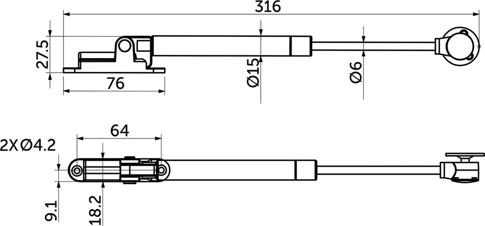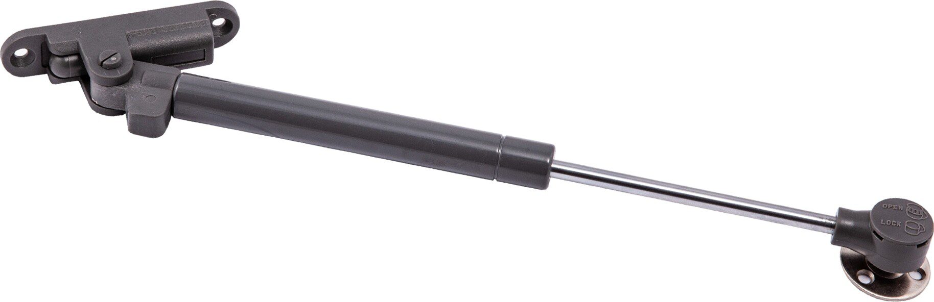 Подъемник для мебели газовый AKS 100N с амортизатором с фиксацией серый (73083) — подъемный механизм для верхней базы кухни, представляет собой трубку с газо-маслянной смесью и штоком с системой уплотниетей и пыльников. Обеспечивает открытие фасада до необходимой точки фиксации, а также встроенным демпфером, обеспечивающем плавное и бесшумное закрытие. 60 000 рабочих циклов.