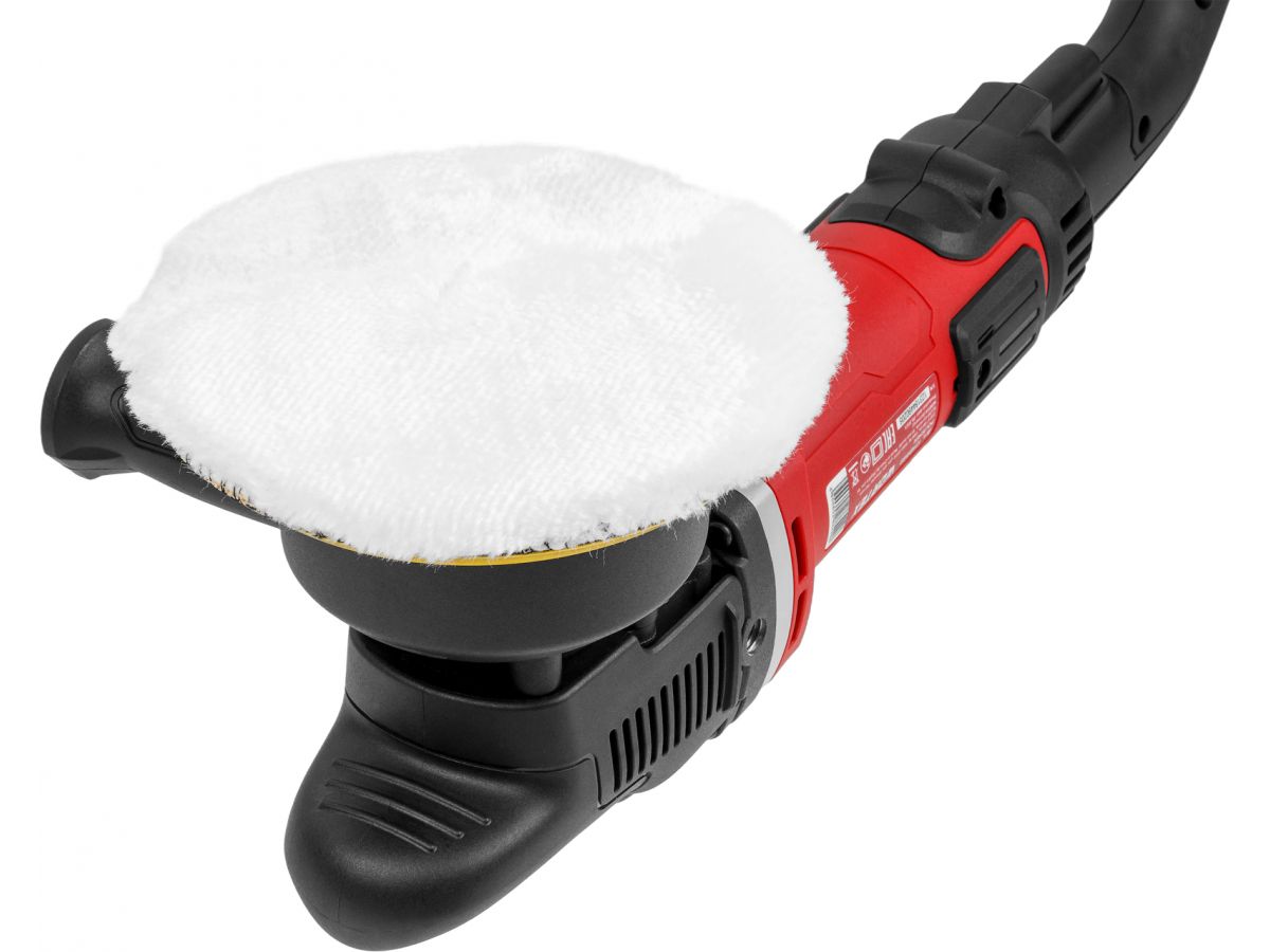 Машина полировальная WORTEX PM 1512 (1318449) двойного действия (с эксцентриком) оснащена двигателем 1100 Вт, а также константной электроникой, которая позволяет поддерживать постоянные обороты двигателя. За счет наличия эксцентрика данная модель обеспечит более деликатную работу с ЛКП. Ход эксцентрика способствует снижению общего времени, которое затрачивается на полировку, а также защищает покрытие от перегрева. Даже при усиленной нагрузке инструмент демонстрирует неизменно высокую производительность работы без падения числа оборотов двигателя. Электронный регулятор оборотов позволит подобрать подходящий режим для работы с любым материалом.