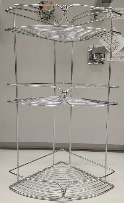 Полка для ванной угловая DOMINADO (W4437) — угловая 3-х уровневая полка из стали с хромовым покрытием со сквозными отверстиями для крепления. Имеет решетчатое основание, которое пропускает излишнюю влагу с душевых предметов.