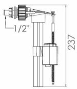 Клапан впускной боковой 1/2″ AV ENGINEERING (AVE129704) с регулируемым поплавком. Резьба подключения — 1/2″, пластиковая. Выдерживает гидроудары до 1 МПа (10 бар). Поплавок находится в защитном кожухе, не допускающем его блокировки стенками бачка или другими элементами арматуры.