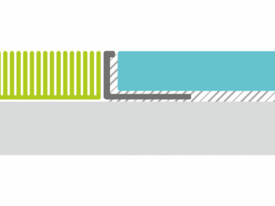 Профиль декоративный алюминиевый КТМ-2000 228 — перфорированный L-образный профиль для прямой отделки краев плитки. Способ крепления: клей для плитки.