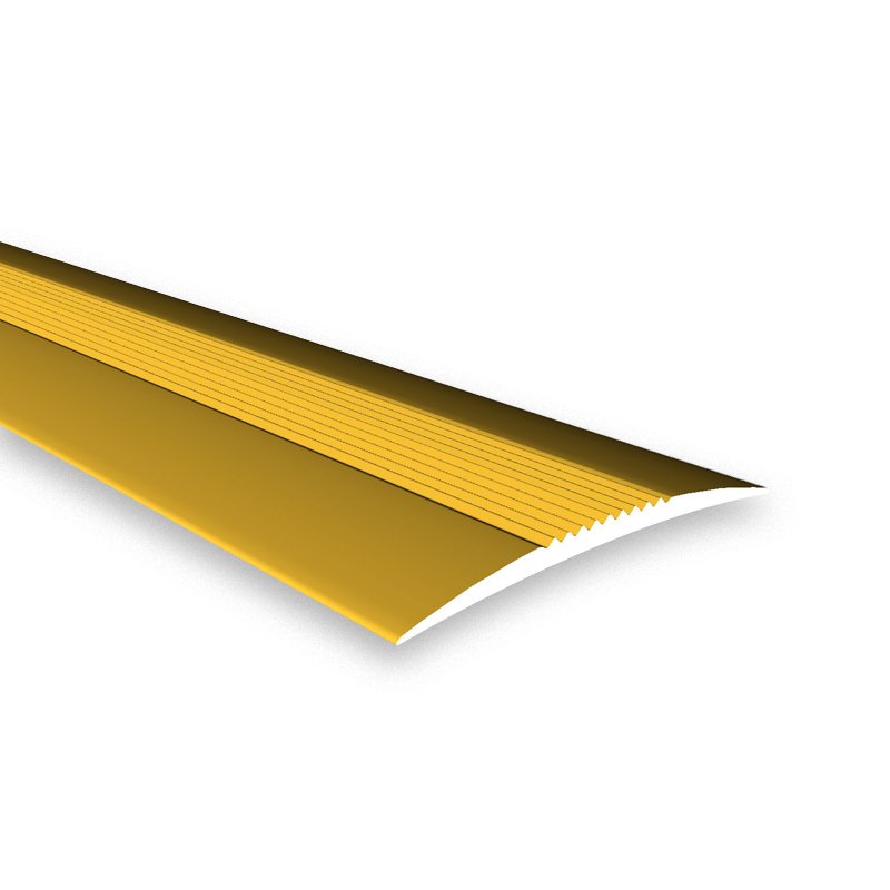Порог алюминиевый КТМ-2000 3328-02Т 1,8 м золото — профиль шириной 37 мм применяется для соединения стыков между напольными покрытиями (керамическая плитка, линолеум, ламинат, паркет). Профиль не имеет продольной жесткости, поэтому не рекомендуется применять на “мягких” покрытиях. Открытая система крепления. Степень нагрузки: для общественных помещений, для офисных помещений, для жилых помещений.