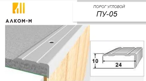 Угловой алюминиевый порог Алком-М ПУ 05 24×10 мм предназначен для оформления соединений и примыканий различных напольных покрытий, отделочных материалов, а также внешних углов ступеней. Изделие выполнено из сплава АД31Т1, изготовленного по ГОСТу. Алюминиевый материал устойчив к коррозии, что гарантирует долгий срок эксплуатации.
