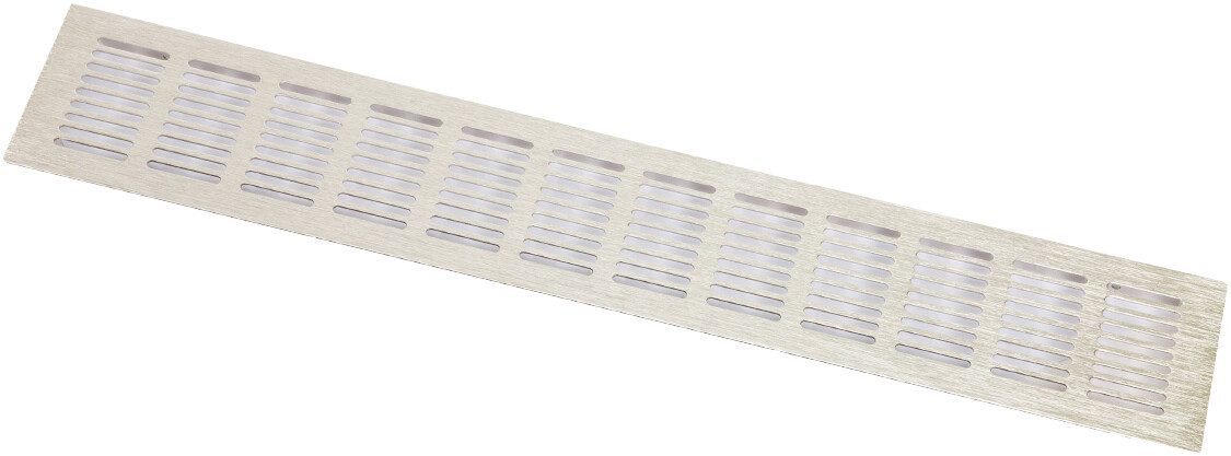 Решетка вентиляционная AKS 480х80 инокс (65798) используется для для вставки в фасады либо изготовления других элементов мебели (как правило кухонь) там где требуется вентилирование воздуха духовые и микроволновые печи, холодильники, посудомоечные машины и др., кроме того может обрезаться в двери во влажных помещениях и т.д. Высота решетки 13 мм.