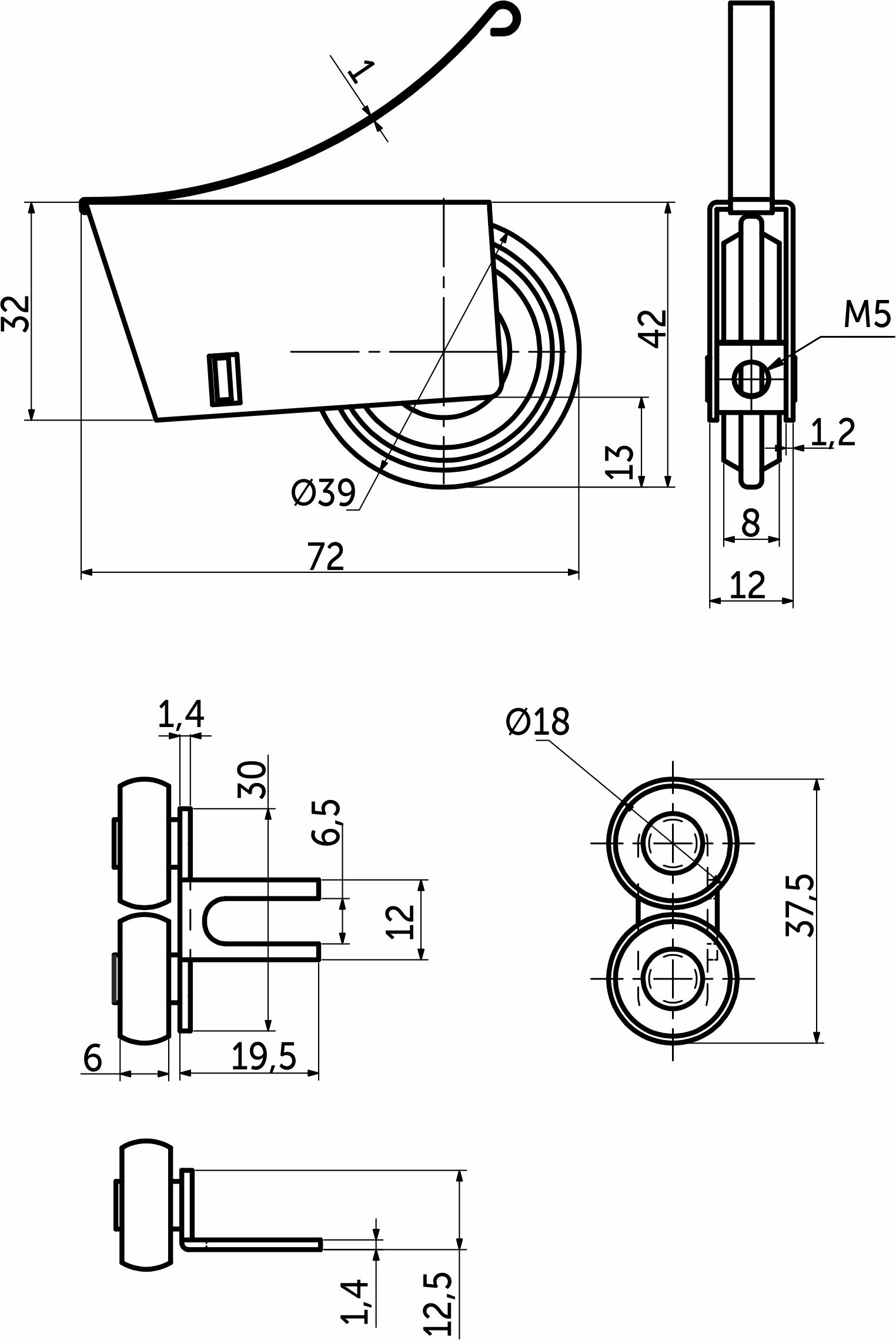 Комплект роликов SENATOR закрытый для 1 раздвижной двери AKS PLUS 80 кг усиленные верхний подшипник.
