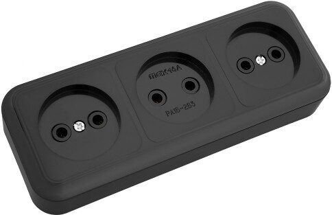 Розетка тройная наружная BYLECTRICA Пралеска черный (РА16-263чер) предназначена для монтажа с открытой проводкой. Лаконичный дизайн. Выполнена из высококачественного ABS-пластика. Глянцевая поверхность. Ударопрочный и стойкий к излому корпус. Работа прибора рассчитана на 5000 циклов «соединение/разъединение».Климатическое исполнение: УХЛ4.Максимальный диаметр подводимого провода (с оболочкой): 16 мм.Номинальное напряжение: 220…250 В.Сечение присоединяемых проводников: от 1,5 до 2,5 мм².Установочные размеры (расстояние между отверстиями): 140±0,2х47±0,2 мм.
