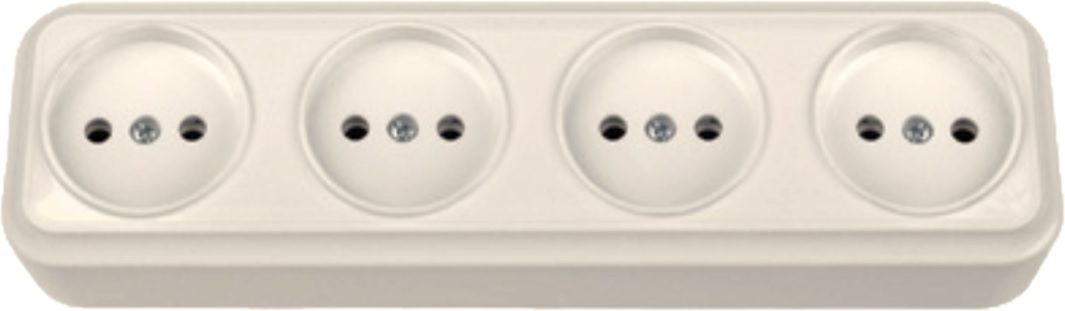 Розетка четверная наружная BYLECTRICA Вариант бежевая (РА16-0181 бежевый) предназначена для бытового использования в стандартных электрических сетях с переменным током и номинальной частотой 50 Гц. Климатическое исполнение — УХЛ4.