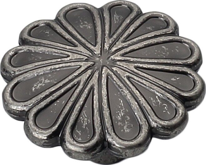 Ручка мебельная кнопка AKS Flora античное серебро (62211) используется для декорирования фасадов выдвижных и открывающихся ящиков.