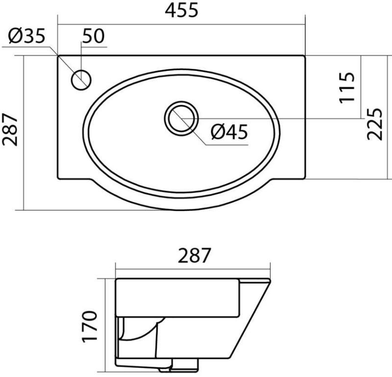 Умывальник Santek Форум 45 настенный, левый WH110542. Материал — керамика.