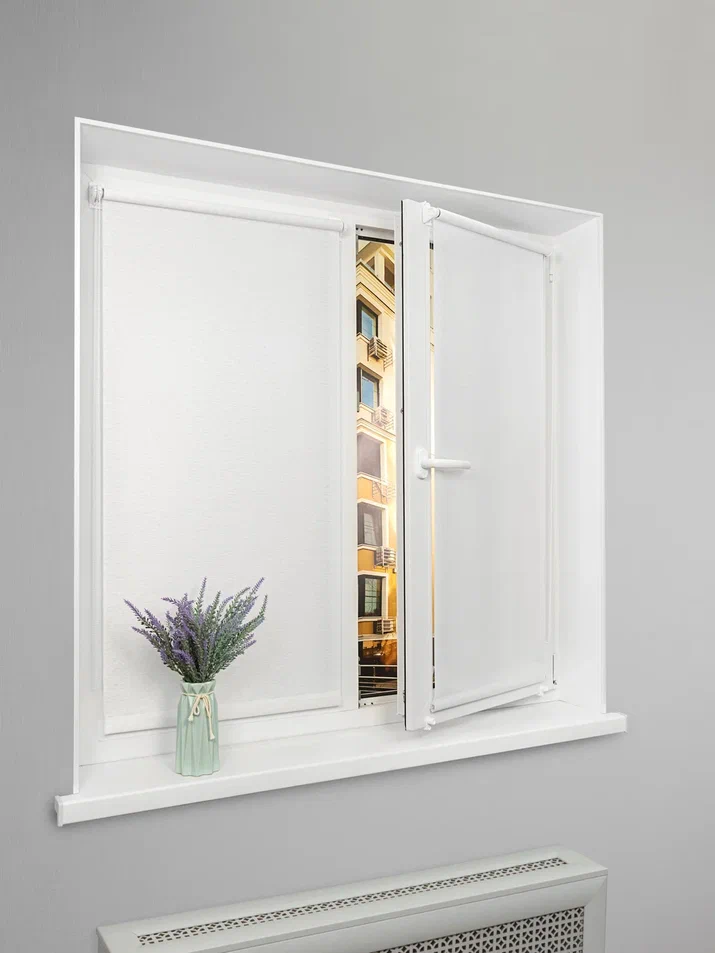 | Комплектация | рулонная штора; площадка на двухстороннем суперскотче 3М для створок — 2 шт; ограничитель управления цепи; цепь управления высотой 120 см; боковые кронштейны – 2 шт; регулировочные кронштейны на откидную створку — 2 шт; крепежные элементы |