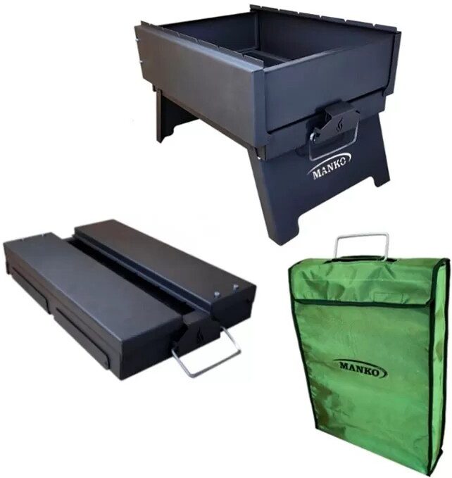 Шеф-мангал MANKO складной (00003355) — складной мангал-чемодан от производителя MANKO (Беларусь). Этот компактный, портативный и в то же время большой мангал очень удобно использовать. Такая модель дорожного мангала подойдёт на все случаи жизни. Мангал весит 9,7 кг, он без труда поместится в любой багажник. Мангал изготовлен из углеродистой стали толщиной 1,5 мм. Туристический мангал понравится всем любителям активного отдыха за городом. Все части корпуса мангала для кемпинга окрашены термостойким покрытием, которое защищает металл от коррозии и прогорания. Краска выдерживает температуру в 700С, поэтому мангал всегда будет иметь красивый внешний вид.Для удобной эксплуатации сборного мангала в комплекте предусмотрена сумка для переноски. Она отличного качества и не порвется в ответственный момент. Объём жаровни мангала для шашлыка — 30 литров. Это позволяет вместить достаточное количество угля для хорошей готовки мяса. Разборный мангал рассчитана на 6 шампуров. Этого достаточно для небольшой компании друзей, родных и близких. Он отлично подойдёт для дачи, с помощью решетки легко становится гриль-мангалом или барбекю. В качестве топлива можно использовать: древесный уголь, брекет, щепу, не крупные дрова. Переносной мангал на ножках можно установить в любое удобное для вас место. Такая дачная мини-кухня поможет разнообразить ваших блюда в условиях природы и не только.