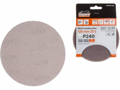 Шлифлист круглый самосцепляющийся 125 мм Р240 GEPARD 5 штук (GP5019-240) на сетчатой основе.