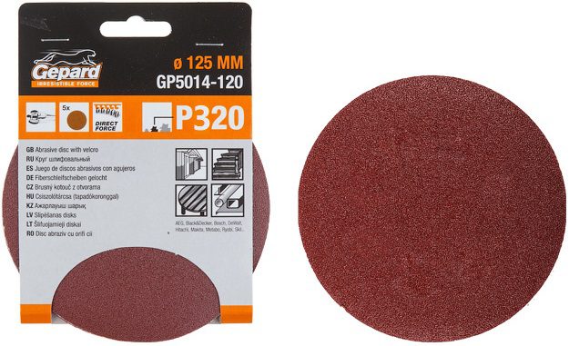 Шлифлист круглый самосцепляющийся 125 мм Р320 GEPARD 5 штук (GP5014-320) абразивный под липучку. Назначение для шлифовально-отделочных работ по металлу, дереву, пластику и другим материалам. Применение в эксцентриковых шлифмашинах / УШМ соответствующего типоразмера. Абразивная составляющая оксид алюминия. Подложка ворсовая (тканевая) подложка для липучки.
