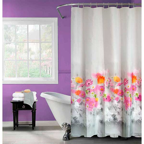 Начинайте каждый день с улыбки, заходя в ванную, украшенную шторкой «Фестиваль». Это настоящая цветочная феерия. На белом полотне из полиэстера сочетаются сочные пурпурные, желтые, белые и оранжевые цветы. Шторка подходит для большинства современных интерьеров. Многообразие оттенков позволяет комбинировать ее практически с любыми декоративными элементами ванной.