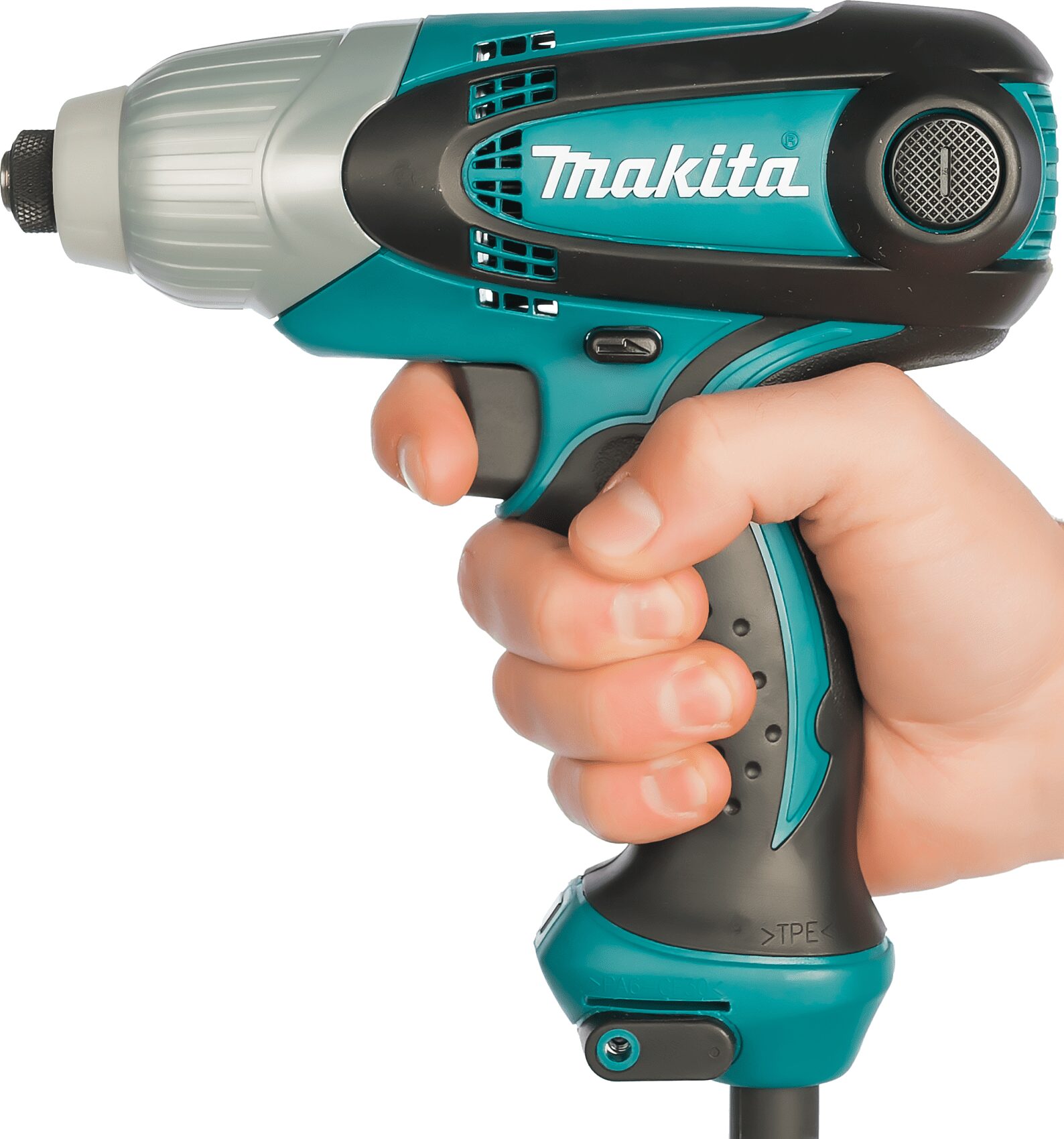 Шуруповерт сетевой ударный MAKITA TD 0101 F (TD0101F) профессиональный инструмент для эксплуатации в условиях строительной и производственной площадки. Режим удара позволяет срывать устойчивые резьбовые соединения. Обладает небольшим весом, прочным и прорезиненным корпусом для повышения удобства, прочности и мобильности инструмента. Подсветка обеспечит видимость в неосвещенных местах.