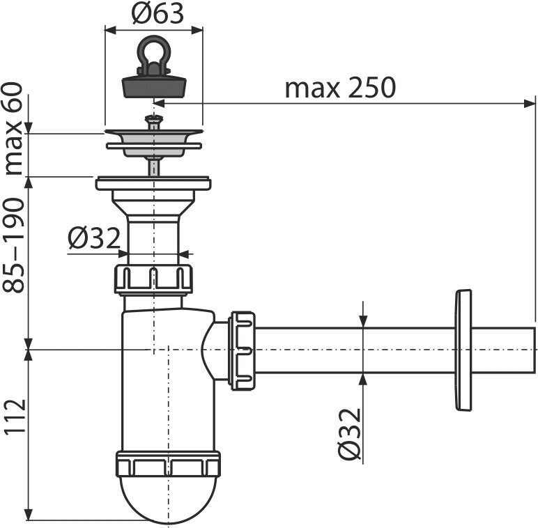 Сифон для умывальника O32 с нержавеющей решеткой O63 ALCAPLAST (A410) предназначен для слива воды из умывальника в канализационный сток. Конструкция имеет подключение к стоковой трубе Ø 32 мм. Сифон изготовлен из высококачественных материалов. В комплекте: корпус сифона, пробка из ПВХ, сливная решетка из нержавеющей стали. Конструкция отличается надежностью и прочностью.