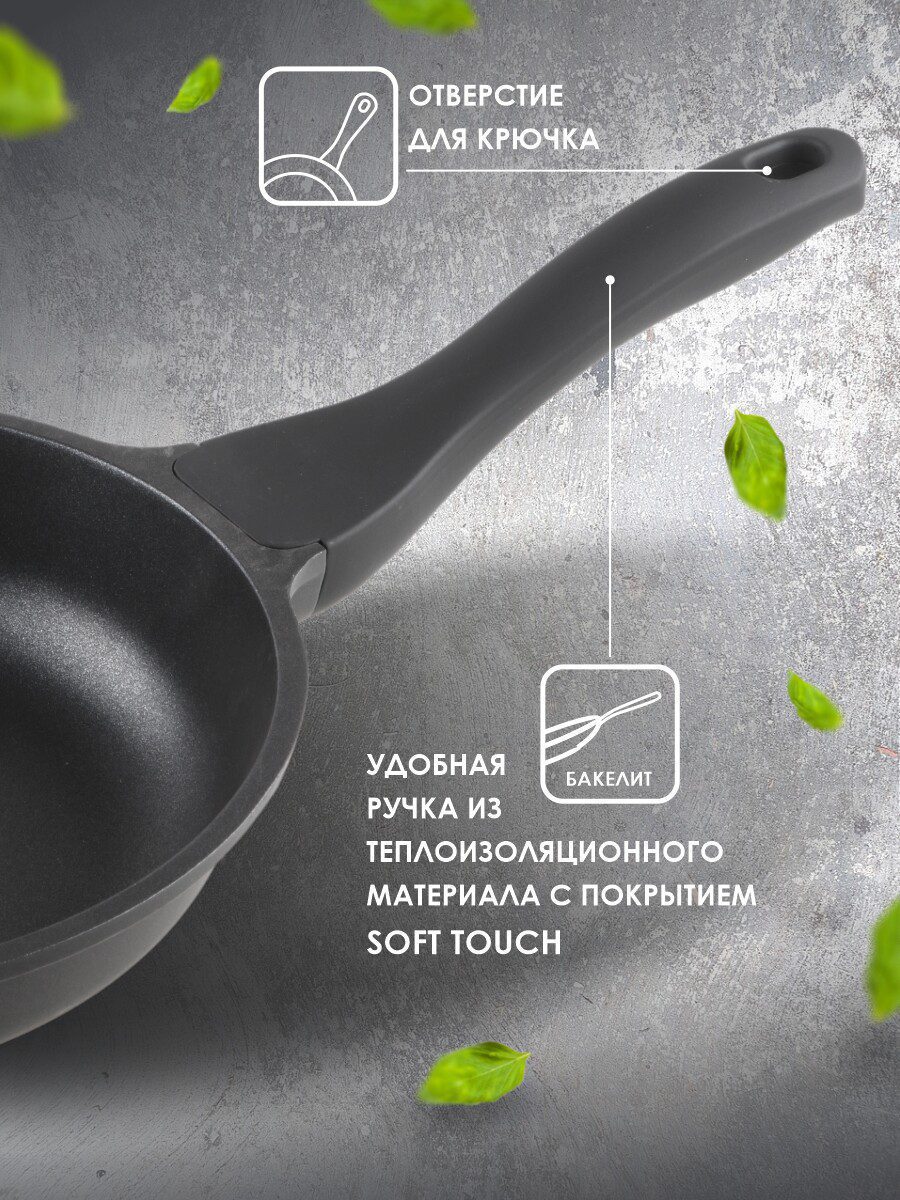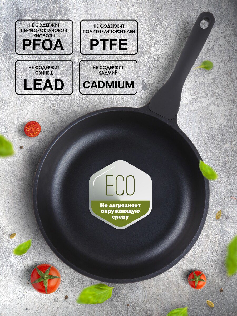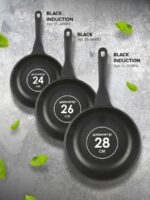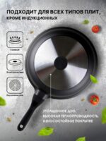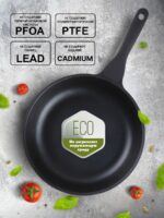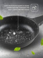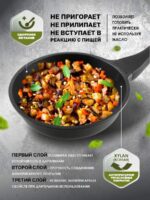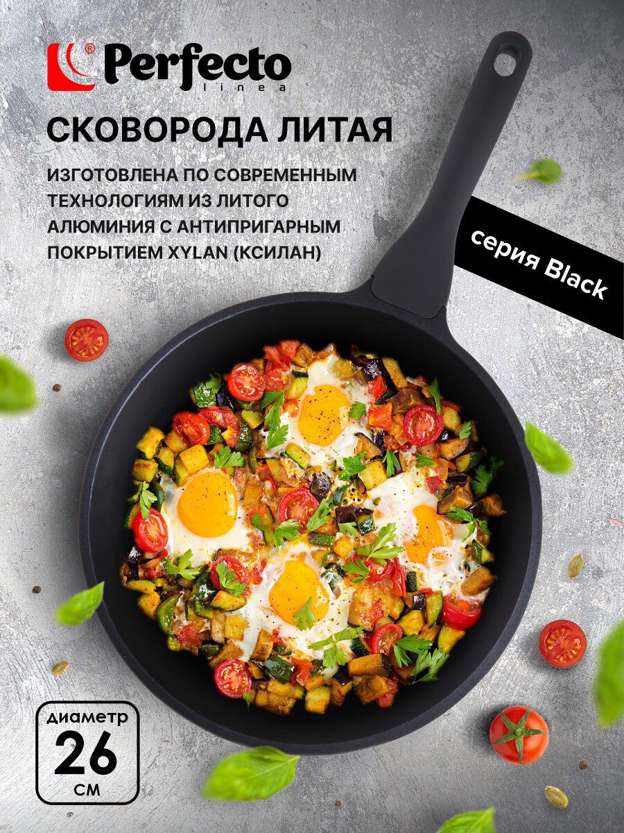 Сковорода алюминиевая 26 см PERFECTO LINEA Black (55-260013) изготовлена из литого алюминия с покрытием Xylan, что исключает возможность деформации и гарантирует долгий срок службы. Модель имеет трехслойное антипригарное покрытие: один слой полимера обеспечивает устойчивость к царапинам, второй — прочность соединения антипригарного покрытия, третий — усиление антипригарных свойств при длительном использовании. Покрытие не вступает в реакцию с пищей, а потому абсолютно безвредно для человека даже при попадании частичек в пищеварительный тракт. Сковорода обладает таким свойством, как PTFE «Easy-Clean». Антипригарное покрытие позволяет готовить практически без масла. Бакелитовая рукоятка сковороды не нагревается. Подходит для всех типов плит, за исключением индукционных.