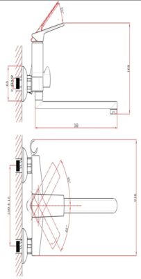 Установка смесителя осуществляется на стену, что позволяет сэкономить пространство и обеспечить удобство использования. Тип крепления — эксцентрики, гарантирует надёжную фиксацию и стабильность конструкции. Длинный поворотный излив смесителя делает его удобным в использовании. Запорный механизм картриджа D35-А обеспечивает плавное и точное регулирование напора воды, а углы поворота рукояток (вертикальный — 25°, горизонтальный — 50°) позволяют настроить комфортную температуру и напор воды. Смеситель сочетает в себе стильный дизайн и удобство использования, обеспечивая надежность и функциональность на протяжении длительного времени.