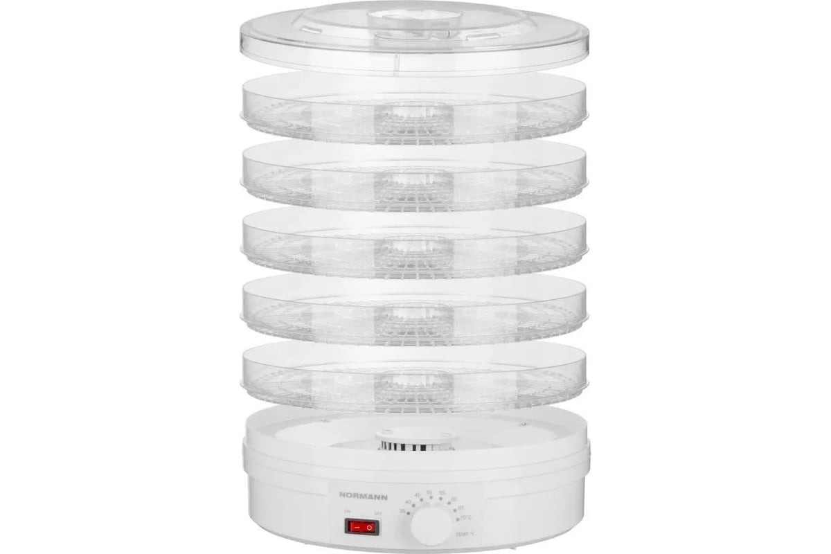 Сушилка для овощей и фруктов NORMANN AFD-902 предназначена для обработки продуктов для последующего хранения без потери питательных свойств. Данным устройством можно сушить фрукты, овощи, ягоды, грибы, хлеб, травы, и многое другое. В зависимости от типа продукта можно установить требуемую температуру сушки. Нагретый воздух проходит через поддоны, что вызывает испарение влаги из высушиваемых овощей и фруктов. Продолжительность сушки зависит от количества влаги и размера обрабатываемых продуктов.