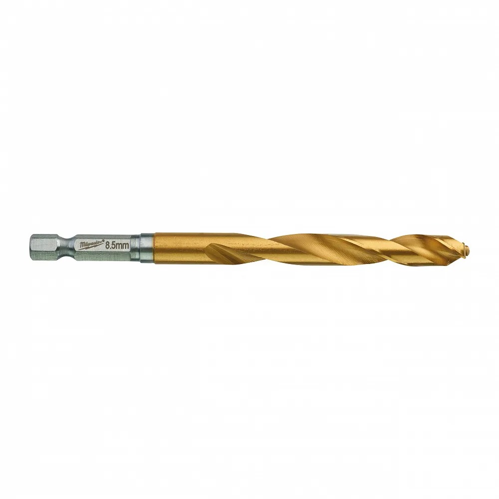 Сверло по металлу 8,5×70х114 мм MILWAUKEE HSS-G-TIN (48894720) с 1/4″ шестигранным хвостовиком оптимизировано для шуруповертов и ударных винтовертов. Угол заточки 135° уменьшает гуляние при засверливании. Конструкция шнека позволяет быстрее выбрасывать стружку. Титановое покрытие распределяет тепло для большей эффективности.