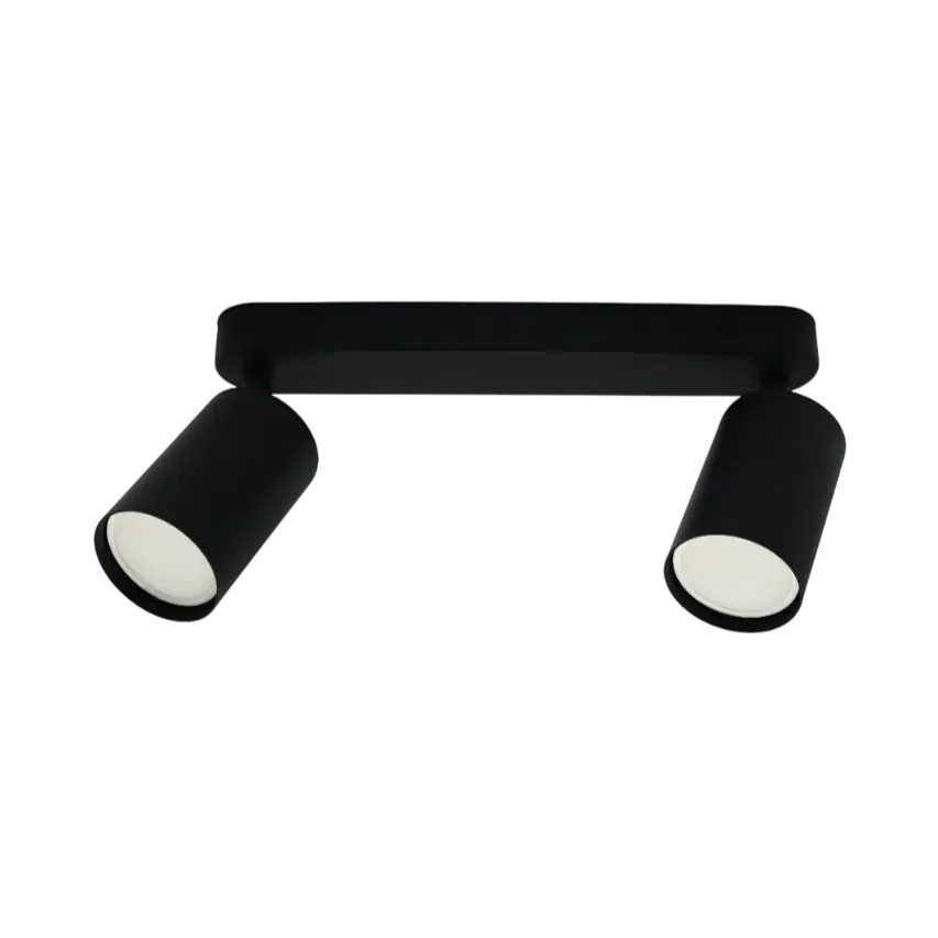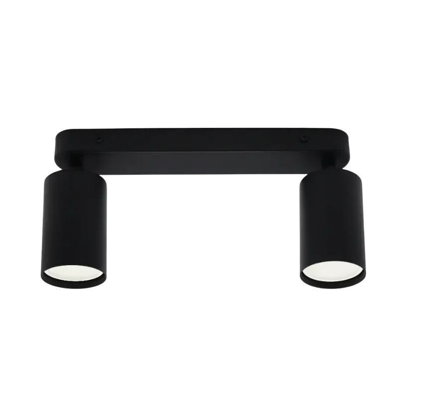 Светильник накладной поворотный GU10 2х12 Вт TRUENERGY Modern черный (21360) — стильный и функциональный светильник идеально подходит для создания акцентного освещения и подчеркивания ключевых элементов вашего пространства. Удобная конструкция позволяет легко монтировать светильник на потолок или стену, обеспечивая надежное крепление и безопасность использования. Светильник рассчитан на две лампы типа GU10 мощностью до 12 Вт каждая, что обеспечивает яркое и направленное освещение. Диаметр плафона — 54 мм, высота плафона — 87 мм. Размер основания — 260х40х24 мм.