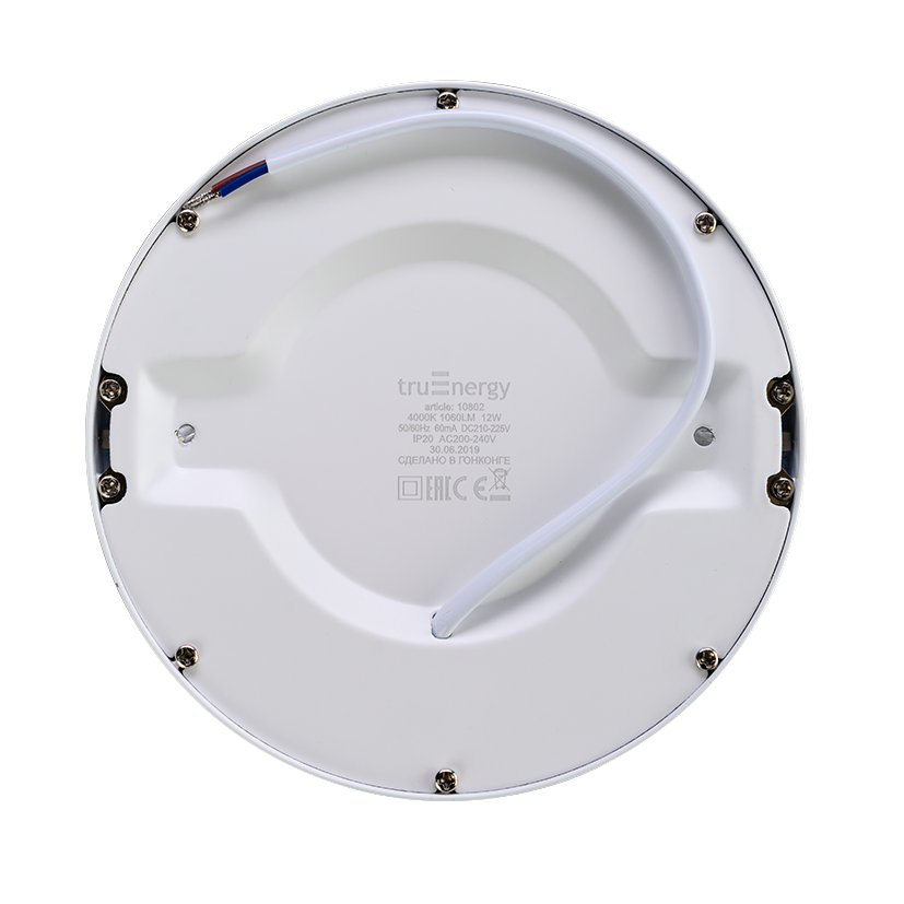 Светильник накладной светодиодный 6 Вт 4000К TRUENERGY Clip-on Круг (10801) предназначен для освещения различных бытовых, коммерческих, а также промышленных помещений. Основной накладной способ монтажа и альтернативный встраеваемый. Регулируемое взрезное отверстие. Материал рассеивателя — белый акриловый полимер. Срок службы — 50000 часов или 20000 циклов вкл./выкл. Угол рассеивания — 120 градусов. Преобразователь напряжения встроен в светильник. Регулируемое посадочное отверстие — 55-90 мм.