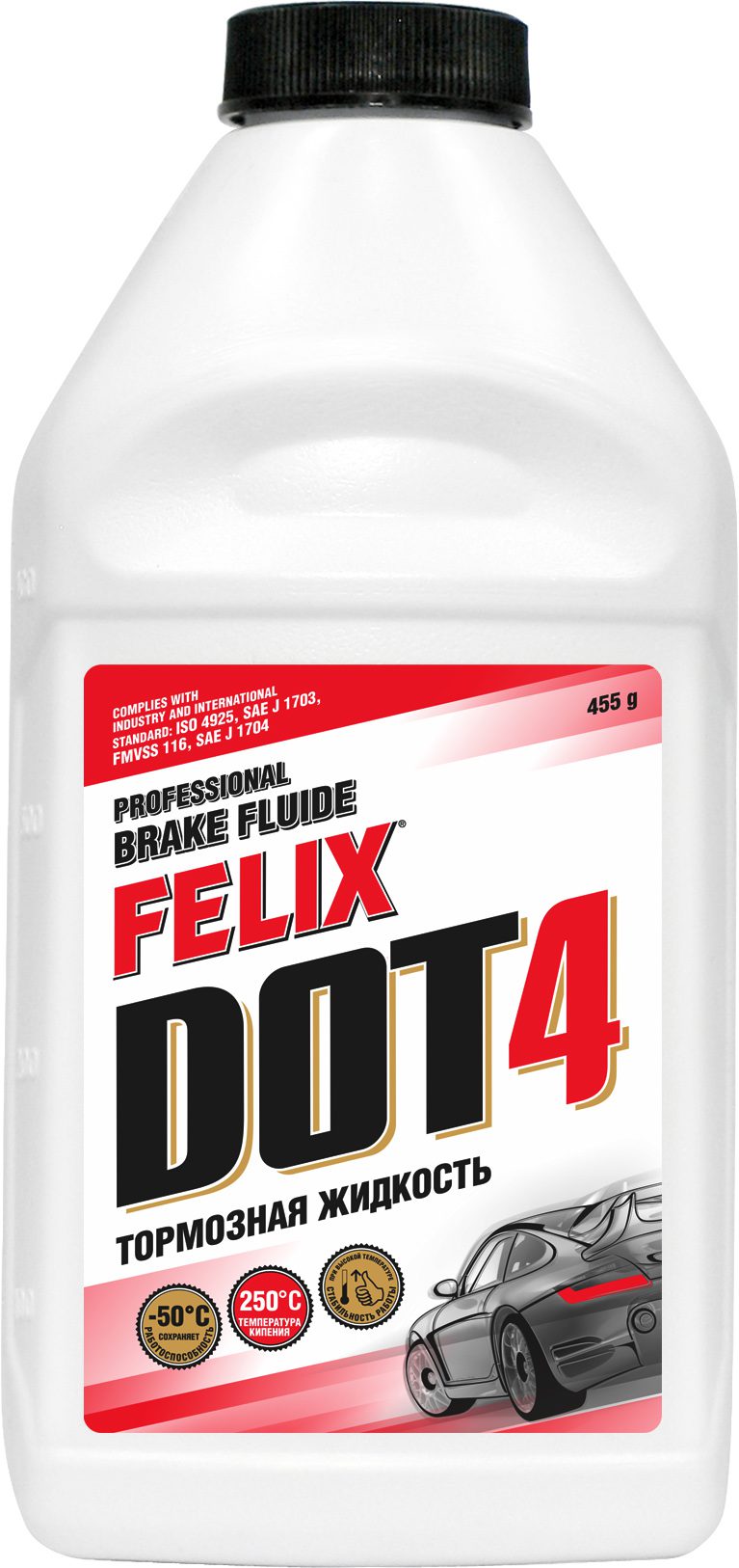 Тормозная жидкость FELIX DOT 4 455 г (430130005) имеет в своем составе эффективные ингибиторы коррозии, обеспечивающие надежную защиту деталей тормозной системы из стали, чугуна, меди, латуни и алюминия. Отвечает требованиям международного стандарта FMVSS 116 для DOT 4.