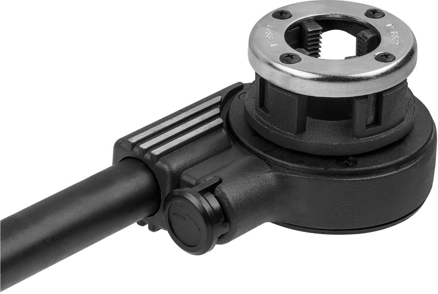 Трещотка с удлинителем к клуппам STARTUL Profi (ST9321) предназначена для использования вместе с клуппами трубными для увеличения эффективности работы и облегчения процесса нарезания резьбы. Клупп вставляется в посадочное гнездо инструмента и фиксируется. Храповой механизм позволяет нарезать резьбу в недоступных или неудобных при работе трубным ключом или воротком местах. Посадочный размер составляет 53 мм, общая длина — 590 мм.