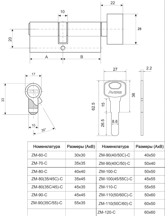 Евроцилиндр с вертушкой AVERS ZM-80-C-CR 45х35 (00021986) стандартный евроцилиндр с системой запирания «ключ-вертушка». Имеет первый класс защиты. Количество пинов: 5.