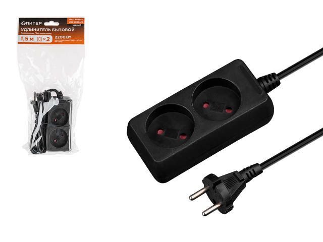 Удлинитель 1,5 м 2 розетки 2,2 кВт ЮПИТЕР черный (JP8101-28) предназначен для присоединения электро- и радиоустройств к электрической сети переменного тока напряжением 220В. Используется в быту, офисе или частном доме.