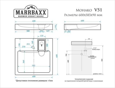 Раковина устанавливается на кронштейны над стиральной машиной (не допустимо монтировать на столешницу стиральной машины).