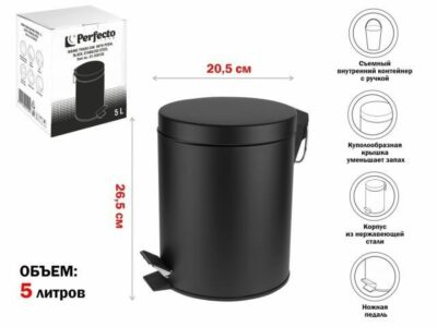 Ведро мусорное с педалью PERFECTO LINEA 5 л (22-202105) — отличный вариант для поддержания чистоты и гигиены на кухне, в санузле, офисах, заведениях общественного питания. Корпус изготовлен из стали. Эргономичное открывание крышки обеспечавается удобной педалью, Вам не нужно наклоняться, чтобы выбросить мусор. Плотное закрытие крышки предотвращает распространение запахов.