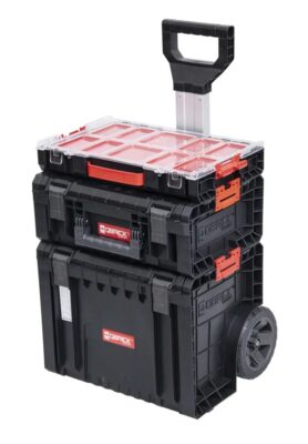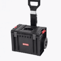 1. Qbrick System PRO Cart 2.0 450х390х690 мм 28 л — мобильный ящик на колесах с телескопической алюминиевой ручкой, который также является основой новой, многомодульной и самой компактной линейки PRO. Ящик имеет большие колеса с резиновым покрытием, закрепленные на металлической оси. Кроме того, сохранность перевозимых инструментов обеспечивают прочные застежки и боковые соединители из прочного полиамида. Кульминацией всего является водонепроницаемая и пыленепроницаемая конструкция на гибкой прокладке, вмонтированной в крышку.
